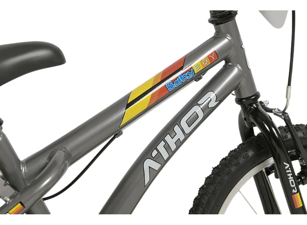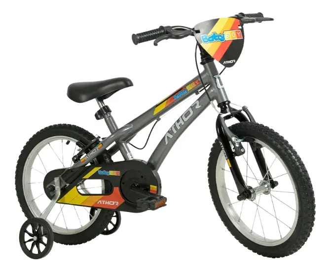 Esta bike combina a cor grafite com um design esportivo, sendo ideal para crianças que estão aprendendo a pedalar.
