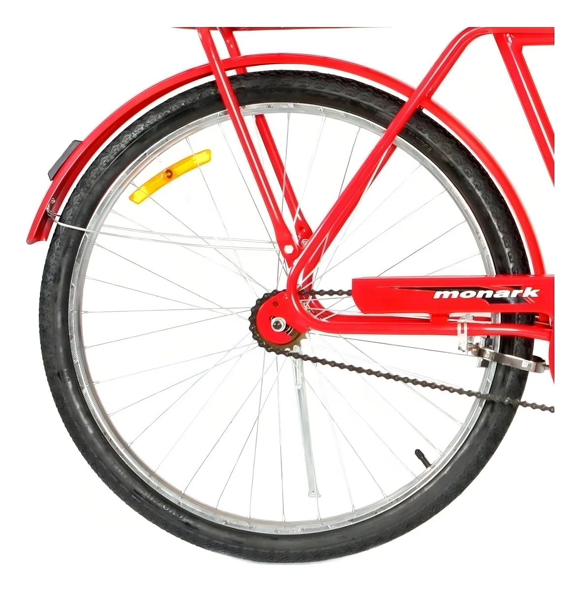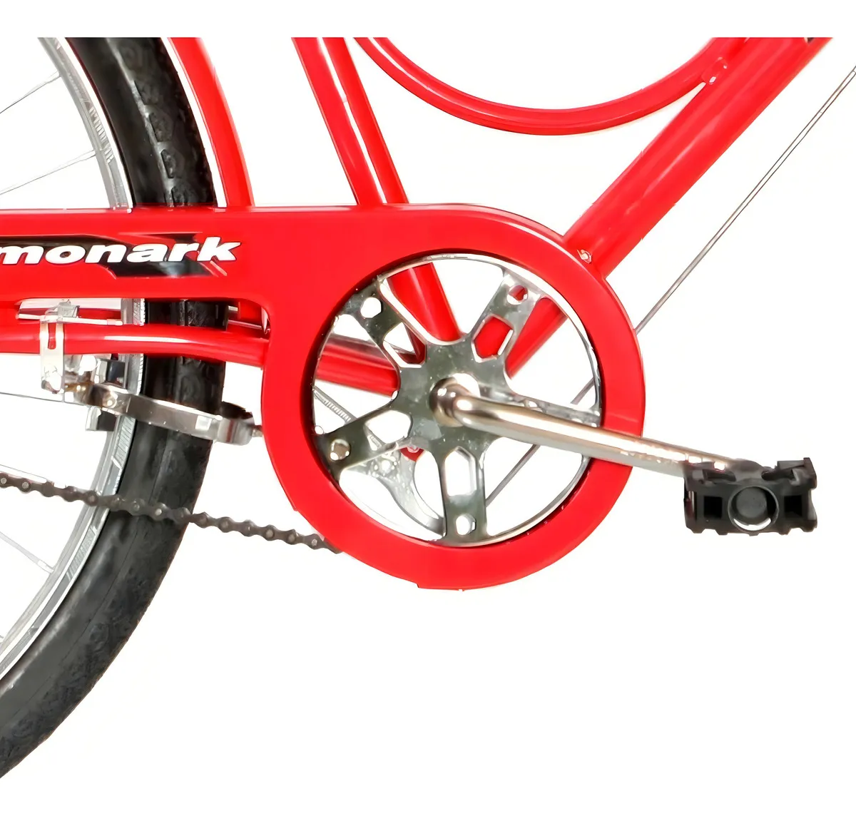 Bicicleta Monark Barra Circular Vermelha (Aro 26) . Com quadro robusto em aço carbono e cor vermelha vibrante, é ideal para o uso urbano, passeios e transporte de cargas leves